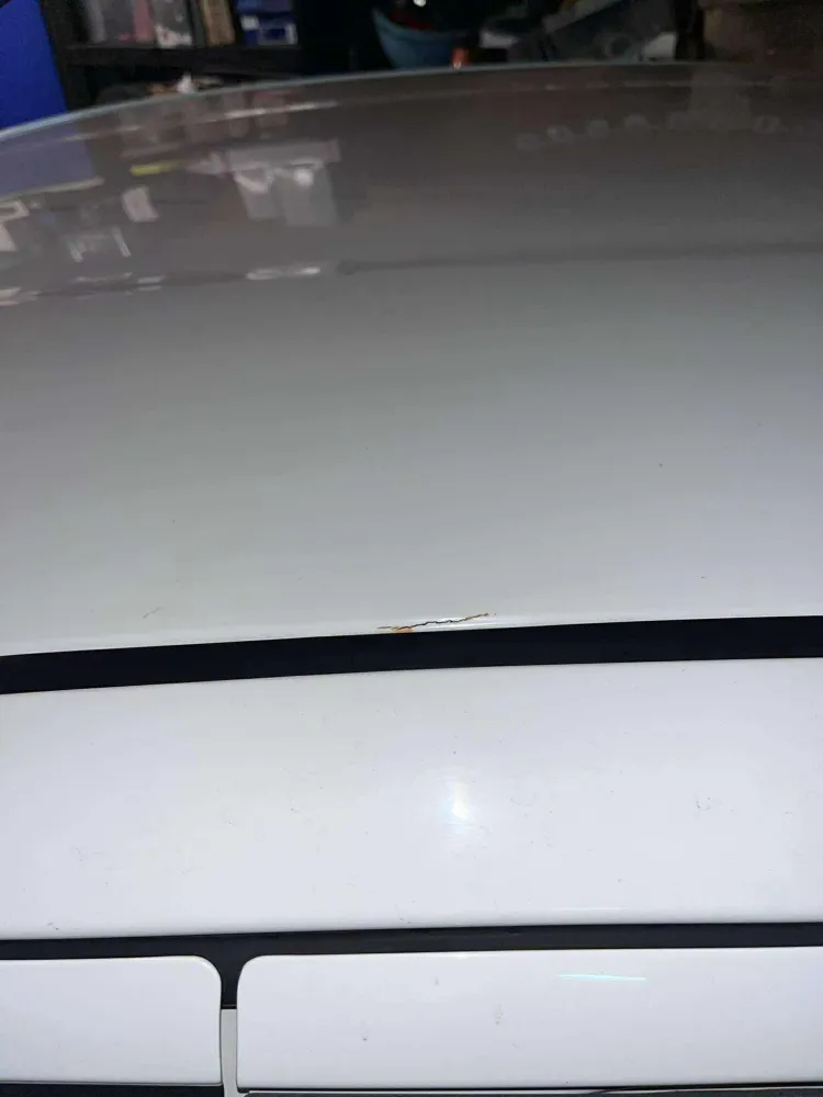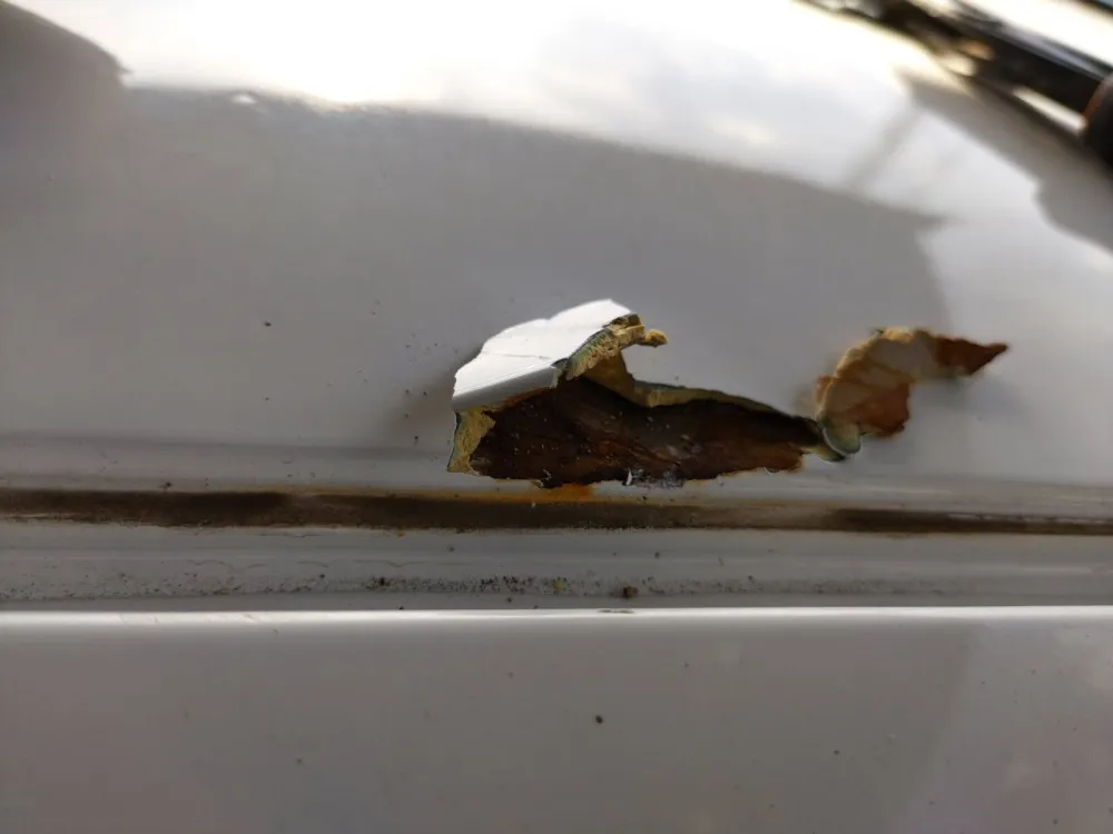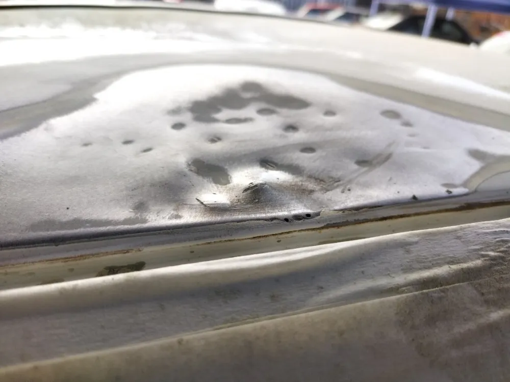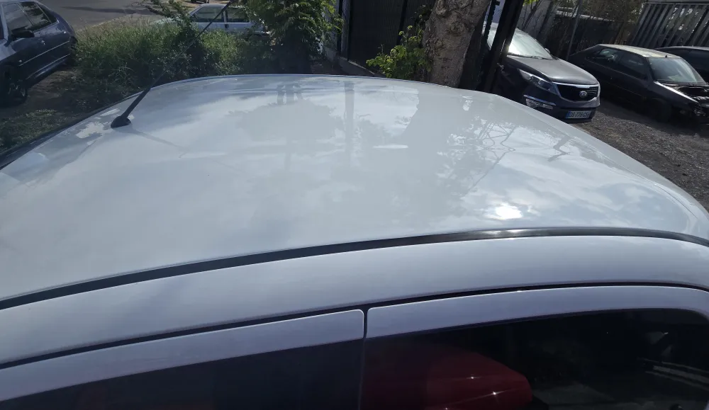 Un excès de mastic mal appliqué avait laissé l'eau s'infiltrer sur cette Peugeot 108, provoquant l'apparition de la rouille. Notre équipe est intervenue pour remettre le toit entièrement à neuf