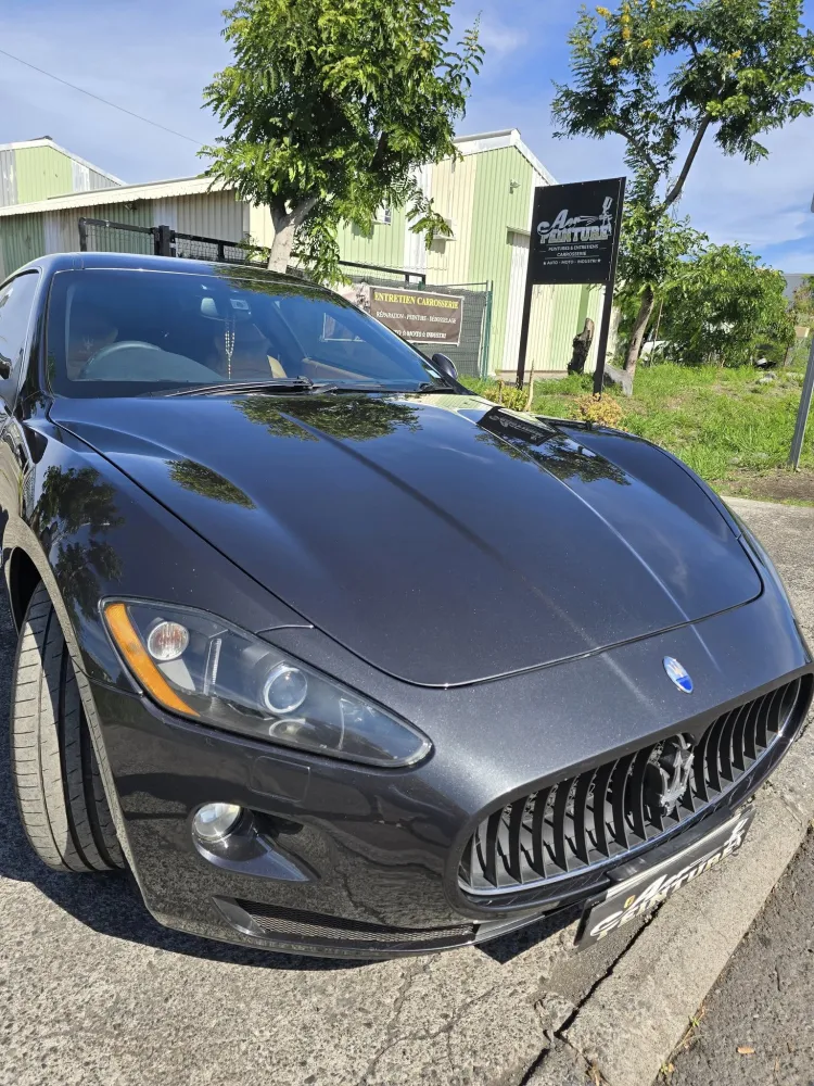La Maserati Granturismo a retrouvé toute son élégance, son homogénéité et la profondeur de sa teinte d'origine. Une finition impeccable, en harmonie parfaite avec l'esthétique luxueuse du modèle.