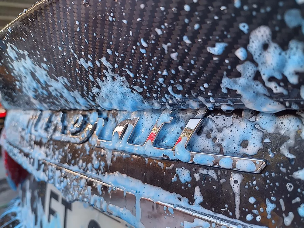 Apportez un air d'Italie à votre lavage avec le Trifoam Shampoing Fra-Ber ! Sa mousse bleu intense, épaisse et éclatante, transforme chaque lavage en une expérience spectaculaire, fun et premium.